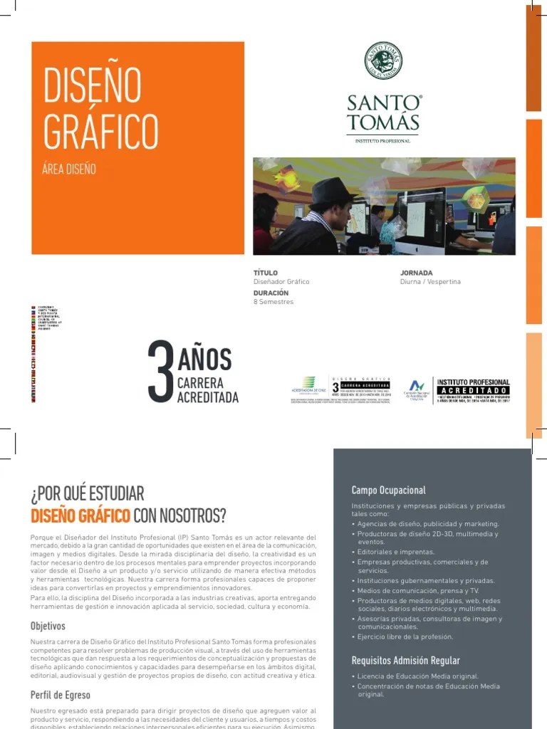 Quiero ser técnico en diseño gráfico digital. Su campo laboral abarca medios de comunicación, tanto análogos como digitales, estudios de diseño, agencias de publicidad, agencias de marketing digital y oficinas de branding y packaging. La carrera de diseño gráfico se inició en 1988 a nivel técnico superior y nació vinculada a la carrera de comunicación social. Utilizarás softwares de edición, desarrollo web, animación 2d y 3d para el desarrollo de elementos gráficos, en campañas de marketing y publicidad. Mediante el uso de distintos softwares y programación digital, modelado e impresión en 3d y producción audiovisual. El diseñador gráfico podrá desempeñarse en las áreas de diseño gráfico, diseño web, diseño experiencia del usuario (ux), diseño 3d y comunicación corporativa. Para mí, el diseño gráfico es una carrera muy apasionante y nos ayuda a liberar toda la creatividad que llevamos dentro... Para ingresar a la carrera, se requiere certificado estudios secundarios completos y cumplir con los requisitos de admisión.