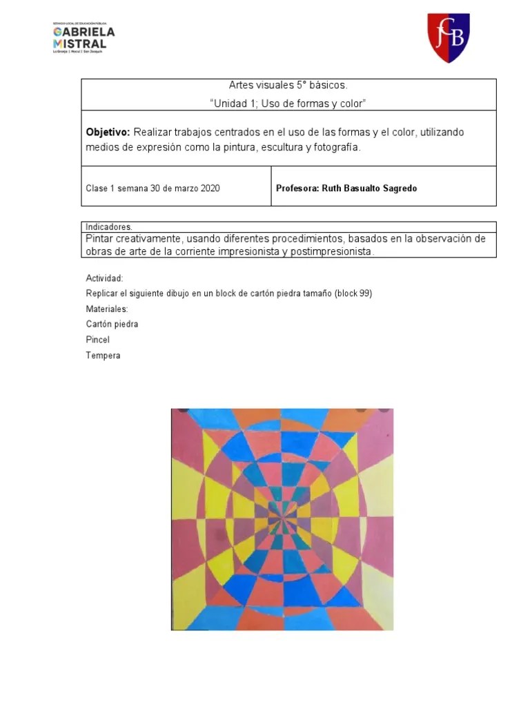 Las artes visuales y el arte a modo general, desde siempre han jugado un papel importante a lo largo de la historia, generando impactos y acontecimientos positivos en el mundo. El ministerio de educación de la nación ha realizado, durante los últimos años, diversas Nuestra clase de artes visuales ofrece a la comunidad, en específico de la est 5, una educación accesible a pesar de las limitantes del confinamiento;. Aplicación gráfica de los elementos básicos de las artes visuales